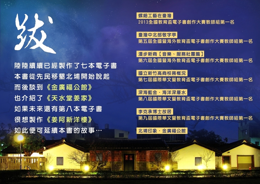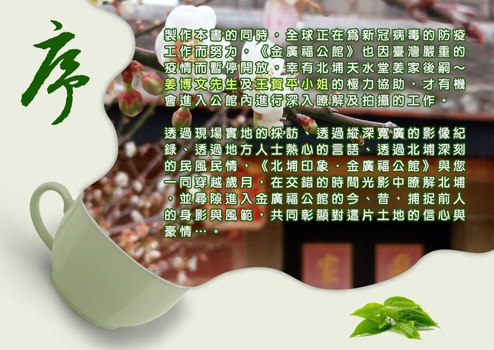 透過現場實地的採訪、透過縱深寬廣的影像紀錄、透過地方人士熱心的言語、透過北埔深刻的民風民情,《北埔印象.金廣福公館》與您一同穿越歲月,在交錯的時間光影中瞭解北埔,並尋隙進入金廣福公館的今、昔,捕捉前人的身影與風範,共同彰顯對這片土地的信心與豪情…。