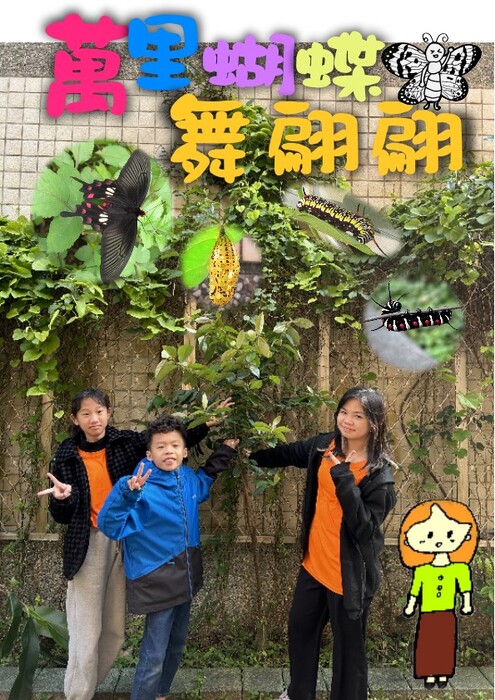 我們學校是位處於北海岸的萬里國小,聽老師說,從民國105年開始,學校的老師還有環教志工開始進行蝴蝶棲地的營造,從硬體設施的改造,到種植蝴蝶食草、蜜源植物,終於在幾年後有了豐碩的成果,也變成我們上課最棒的教材。這本書就是要記錄我們學校的四大蝶種和環境,希望大家可以對蝴蝶更了解。