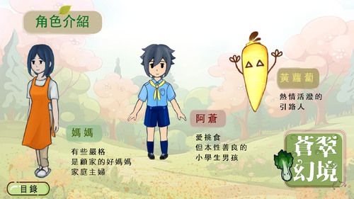 經過一番討論的結果後,決定用我們生活中必不可缺的重要糧食-農作物,以根、莖、葉、果實的分類來介紹,除了實現寓教於樂外,讓學習知識變得更加有趣,也希望可以透過將農作物擬人化的可愛形象,讓愛挑食的小朋友們學習到吃這些營養的農作物對身體健康是很有幫助的,減少因挑食造成的糧食浪費。